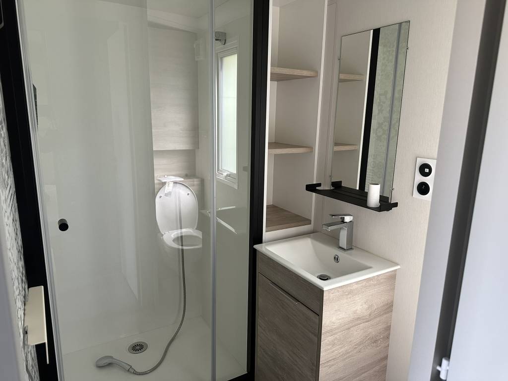 - Les plus du Premium : Mobil home de - 5 ans, Terrasse semie couverte, lave-vaisselle, climatisation, chambre adulte avec lit 160 x 200 cm, sèche cheveux et sèche serviette dans la salle de bain