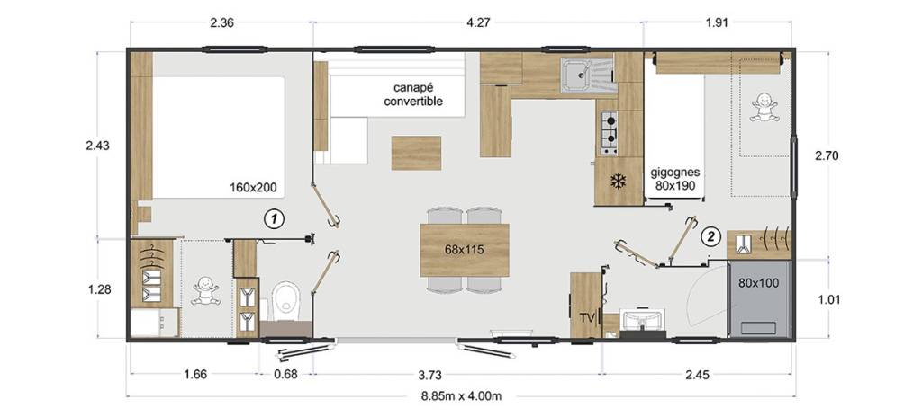 Mobil home 4 personnes Premium - 2 chambres